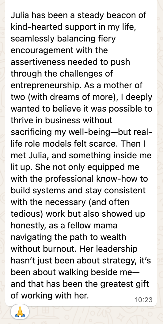 Hi love, I’m Julia, soul-led business coach, mama of two, and founder of the Sovereign Mamas movement.